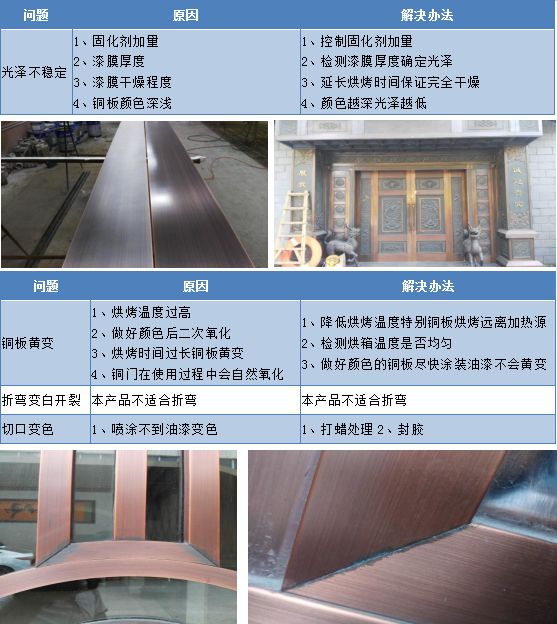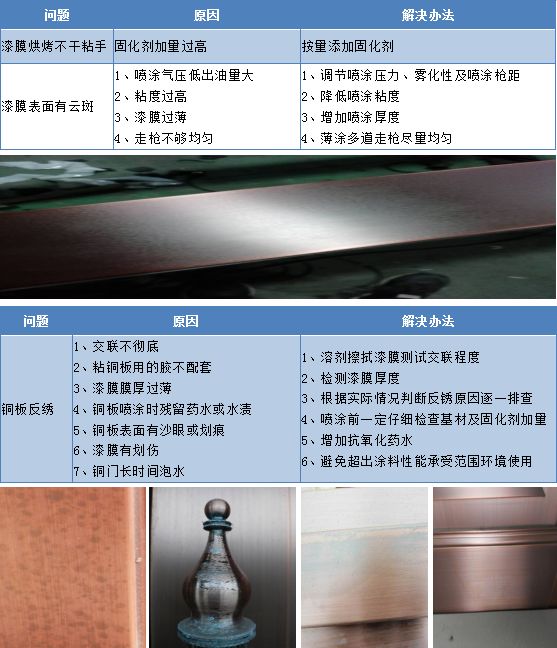 銅基材涂裝氟碳涂料時,需對基材進行前處理去除表面油脂、浮灰及其他附著物,**銅基材表面干凈整潔,為氟碳涂層提供良好的附著力。但氟碳涂料施工過程中或施工后,因諸多因素導(dǎo)致漆膜易出現(xiàn)某些問題。萬工氟碳漆根據(jù)技服人員現(xiàn)場服務(wù)反饋,總結(jié)部分問題及相關(guān)解決方案供廣大客戶參考。