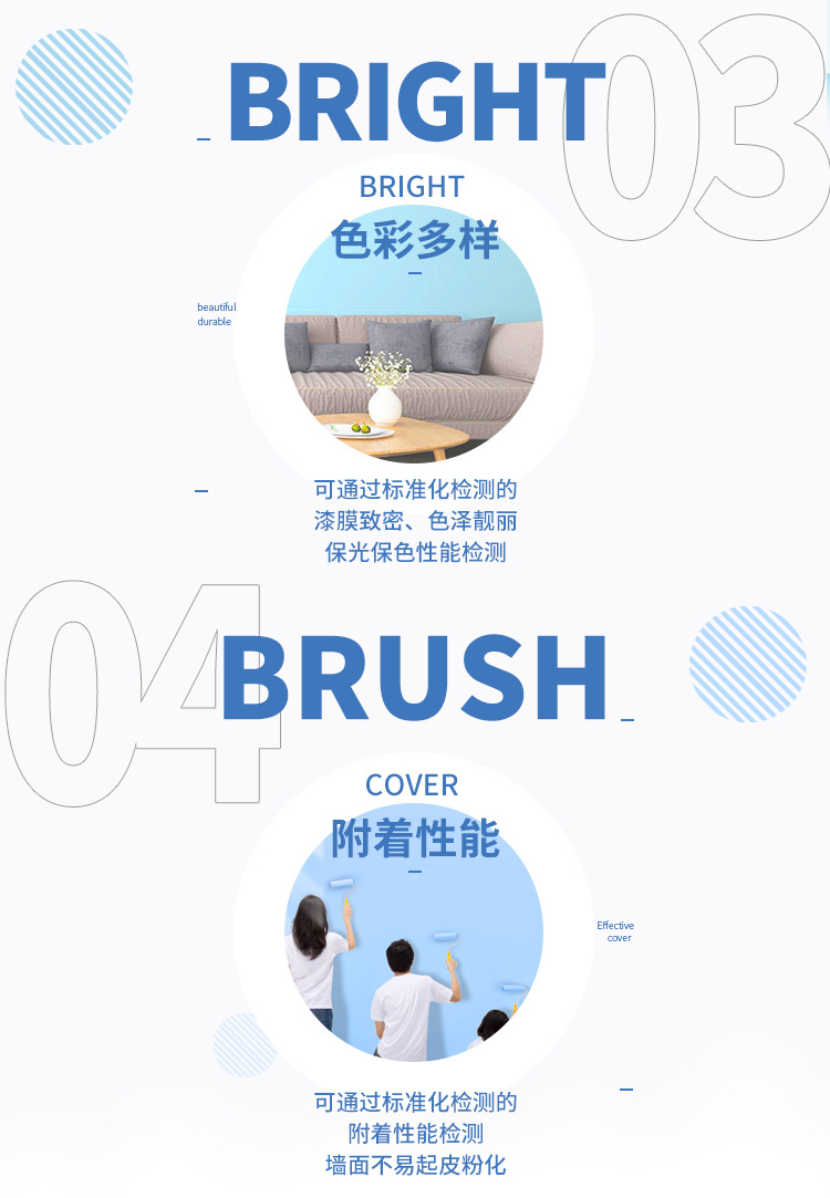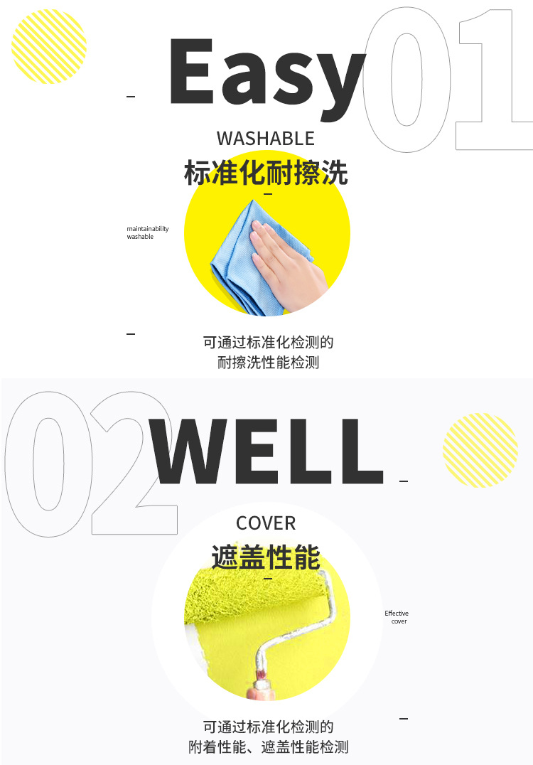 標(biāo)準(zhǔn)化耐擦洗性能:可沾水擦洗不傷墻面,簡(jiǎn)單方便;
