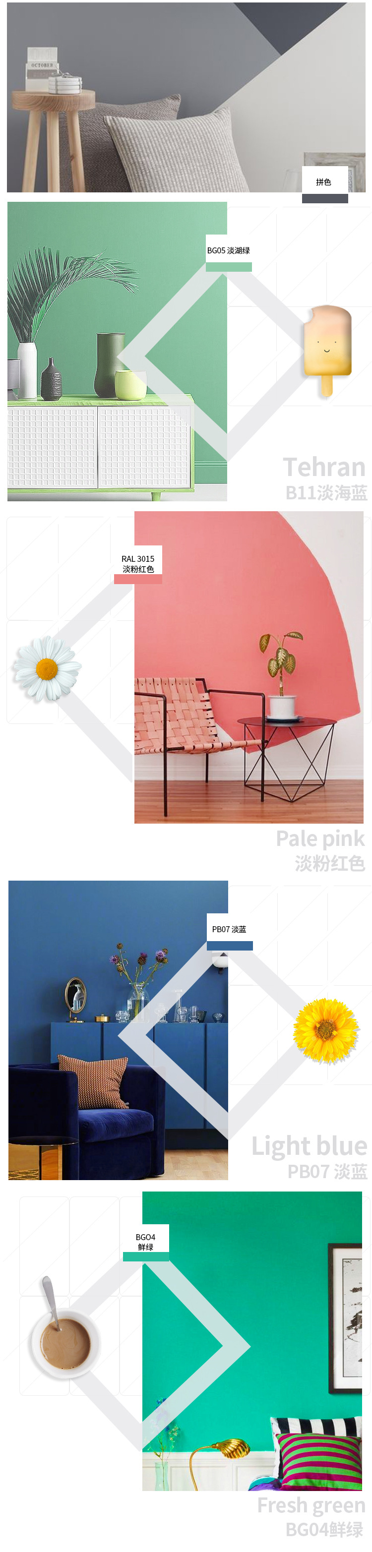 色彩靚麗:漆膜致密、保光保色讓墻面更加清新靚麗,煥然—新;