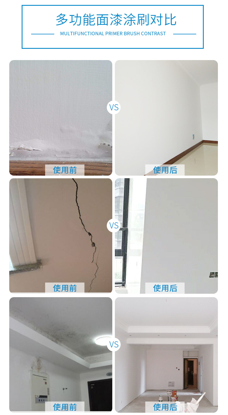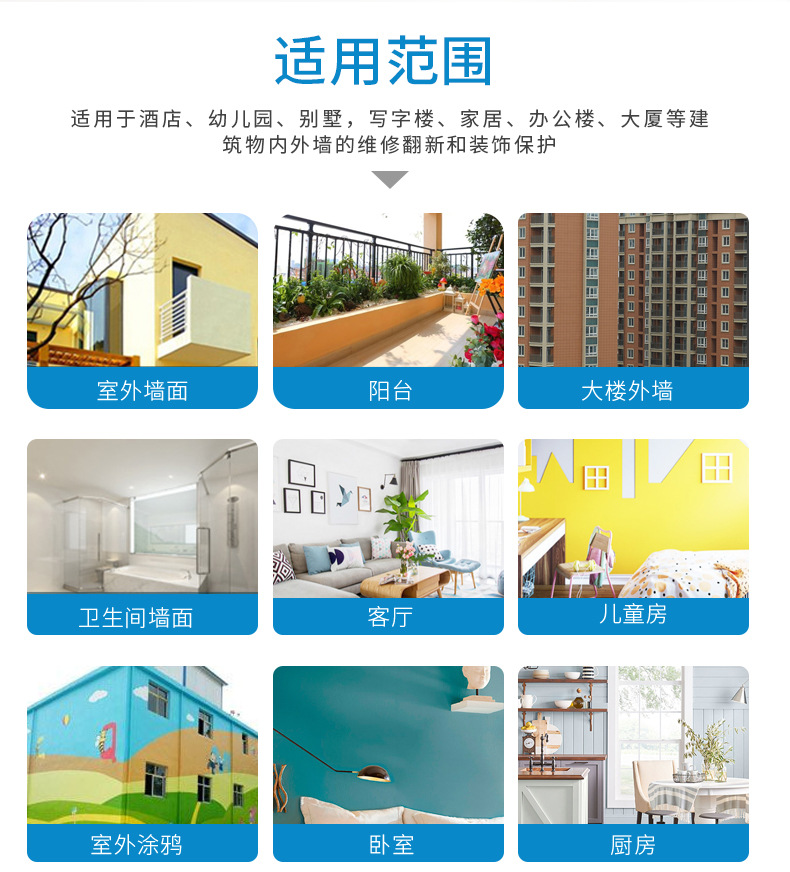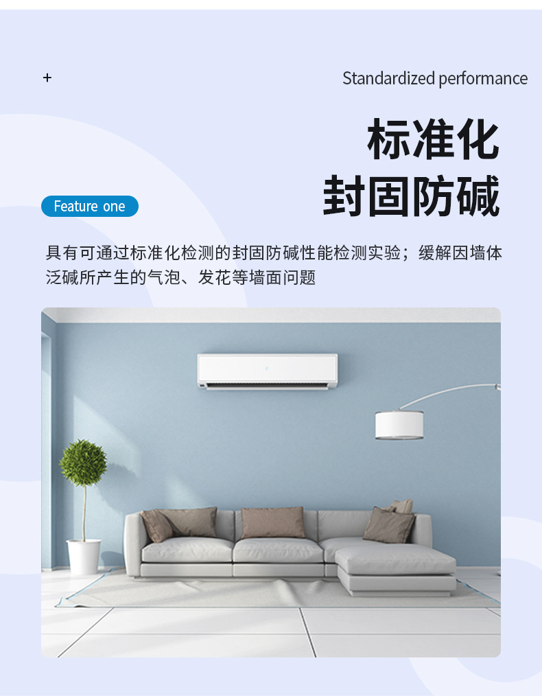 標(biāo)準(zhǔn)化防堿性能:緩解因墻體泛堿所產(chǎn)生的氣泡、發(fā)花等墻面問(wèn)題;