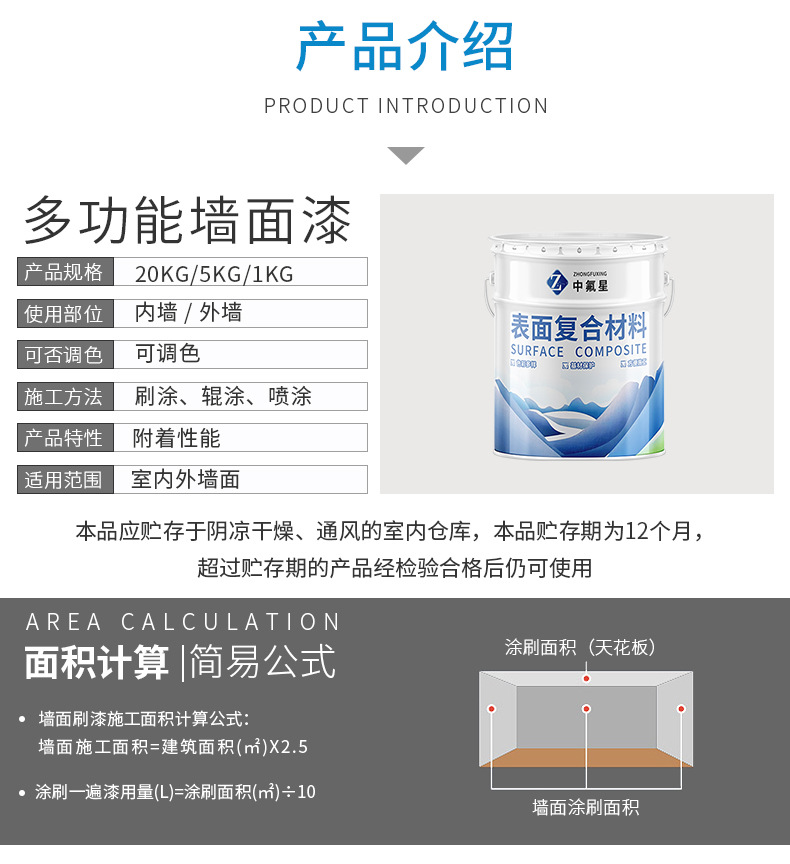 【中氟星】多功能墻面面漆的主要功能是裝飾和保護(hù)建筑內(nèi)外部墻面,使建筑整潔美觀,同時(shí)能起到保護(hù)建筑物墻面的作用,延長(zhǎng)其使用壽命。