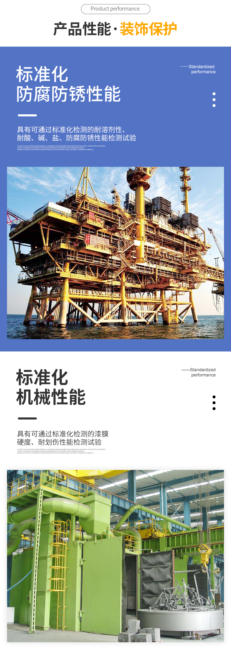 標(biāo)準(zhǔn)化附著力:具有可通過標(biāo)準(zhǔn)化檢測(cè)的附著力、防滲透性,致密性出色,能有效防止水分、二氧化碳的滲透及有害的物質(zhì)的侵蝕,可有效提高防腐性能;