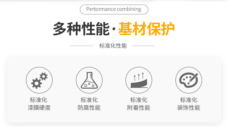 漆膜光滑、致密堅硬,有標準化的防劃耐擦性能,漆膜形似瓷釉,有著陶瓷般的表面質(zhì)感;