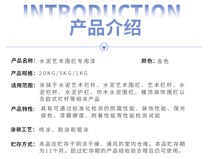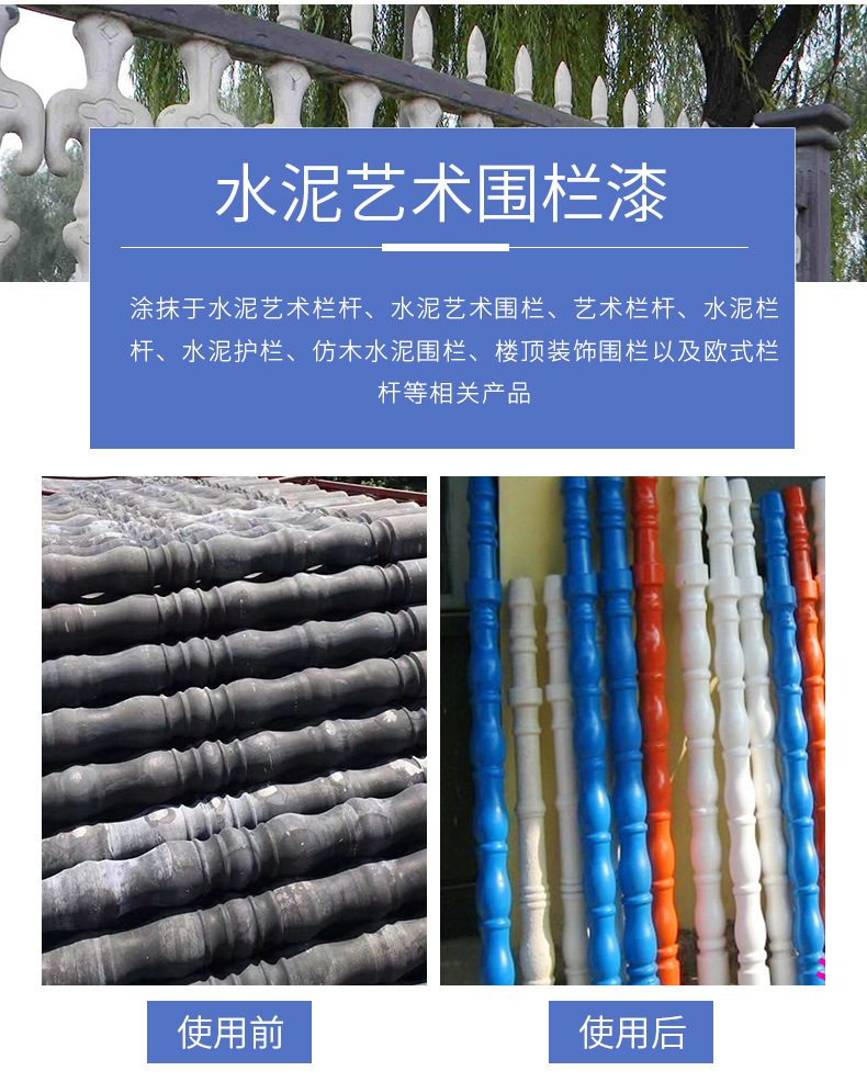 適用于水泥藝術(shù)圍欄,水泥欄桿,木制欄桿,樓頂防護圍欄等各種圍欄的表面裝飾保護